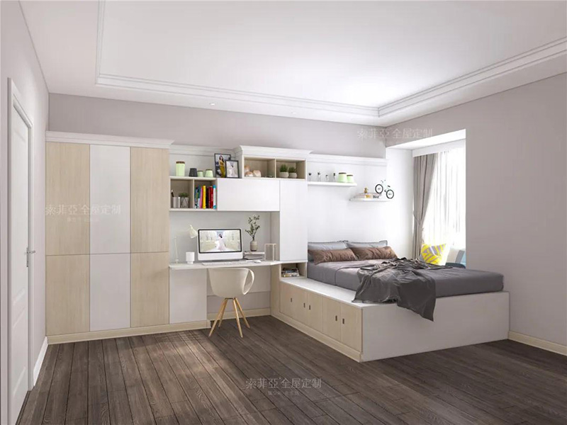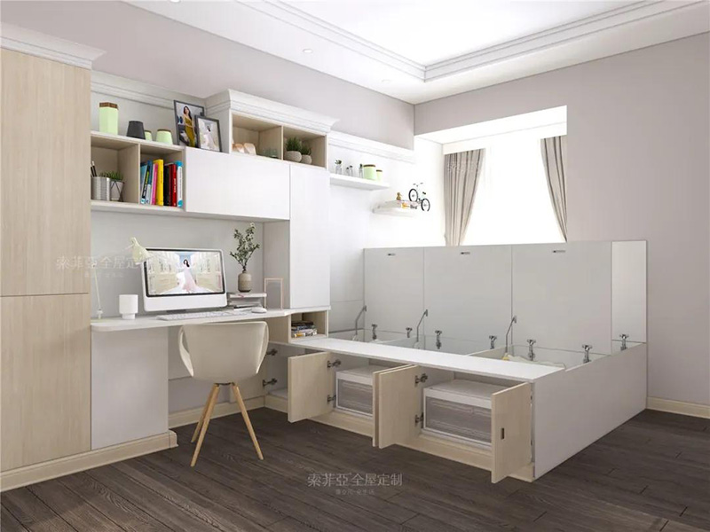 榻榻米+書桌組合使用,兼備休息、工作、收納三大功能,普通臥室也能秒變多功能房!