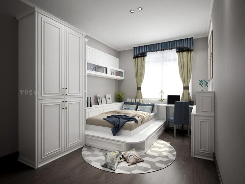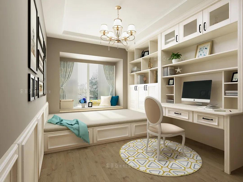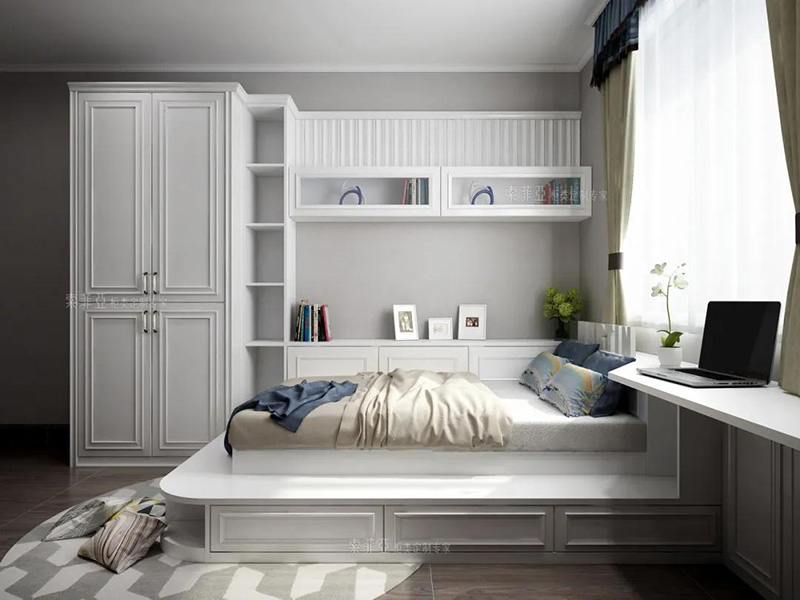 簡歐風榻榻米多用白色搭配吸塑造型的門板,既有歐式形制上的古典美,也更符合當下流行的審美。