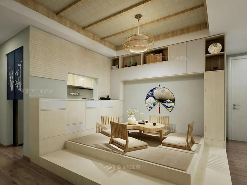 餐廳榻榻米還能搭配餐邊櫃一同設計,讓餐廳整體性更強。緊鄰廚房布局時還能打造出傳菜區,生活性滿滿。