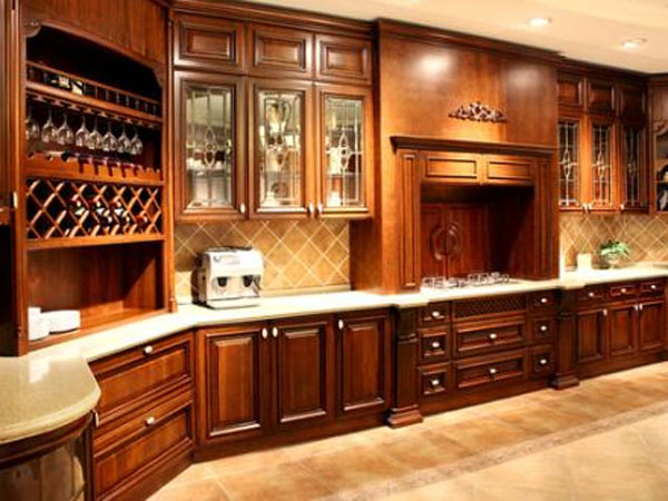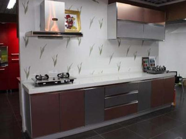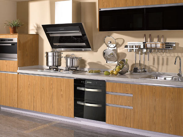 首先我們來了解實木型櫥櫃門板,這類門板風格多為古典型,以櫻桃木色、胡桃木色、橡木色為主。門芯為中密度板貼實木皮,制作中一般在實木表面做凹凸造型,外噴漆,從而保持了原木色且造型優美。其優點是高貴大方,具有回歸自然,但實木門板易受溫度及濕度的影響而變形,中式廚房需慎重選擇,再者其價格昂貴。
