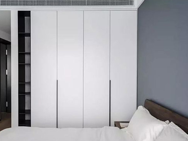 如果臥室空間允許,我們可以選擇臥室開門衣櫃,相比與推拉門,我們減少了軌道難清理的問題,現在的開門衣櫃門款式設計更加體現人性化,能根據需求提供更貼近你的方案。