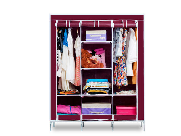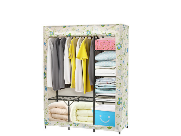 折疊衣櫃主要是由支撐桿+布料組合而成,如果選用花色漂亮的布料,也會顯得十分美觀。布衣櫃里面有掛衣桿,可以將衣服都掛起來,下面再放置幾個收納盒,將物品分類收好,這種簡易布衣櫃價格實惠,大概在70元至150元之間。