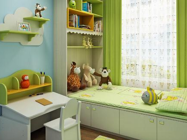 2.由于小臥室的裝潢面積較小,所以在選擇墻面裝潢色調的時候應盡量選擇較為明亮的色調,明亮的裝潢色調不僅能增加小臥室的採光性,而且還能帶給人一種擴大臥室空間面積的視覺效果。