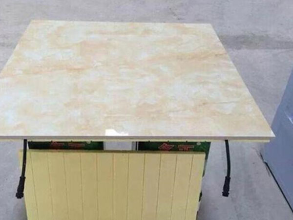 2、暖萬家自發熱瓷磚:佛山暖萬家公司旗下產品,結合了地暖、地板和保健三合一產品。將納米合金發熱熱芯片嵌入到瓷磚內,模塊化結構設計。納米合金發熱芯片位于瓷磚表層下方5~10毫米處,熱傳導快,減少熱能損耗。