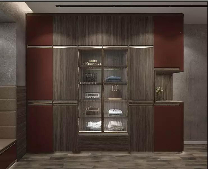 @vivide家的全屋設計以黑胡桃木色為主,小面積采用波爾多紅撞色,搭配淺色系皮質家具,整體色調優雅輕奢、渾厚沉穩。