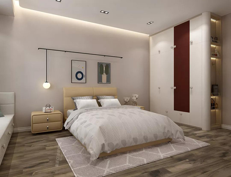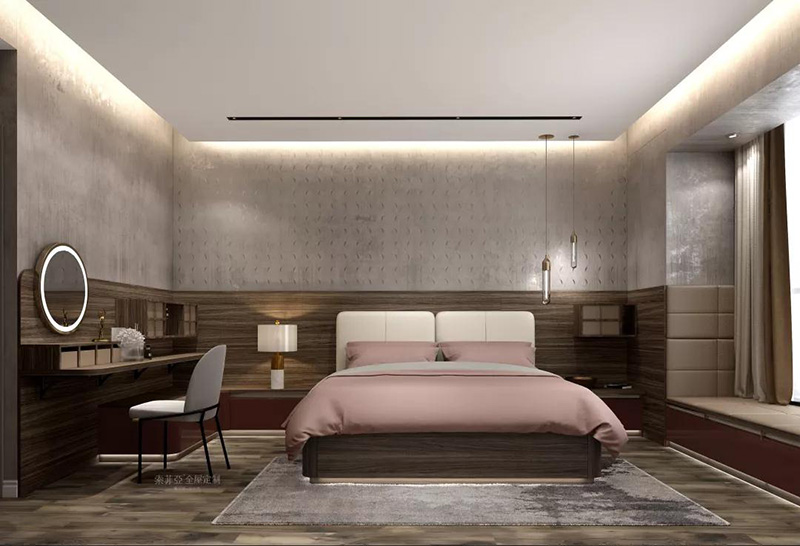 月亮吊頂搭配皮質床屏床頭櫃,溫馨不失貴氣。