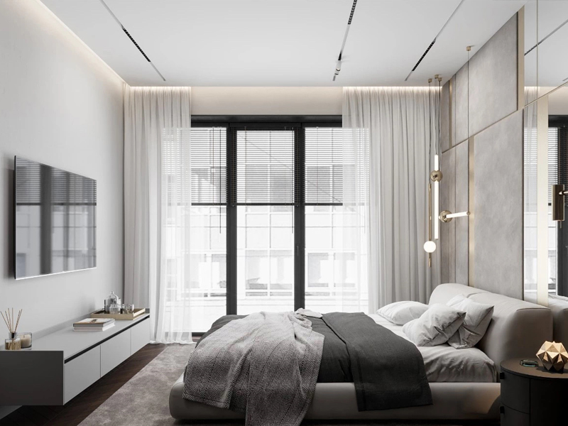 1、通風:保持干凈清新的空氣,有助于提高睡眠質量。臥室裝潢時要注意室內的通風效果,只有保證了室內良好的通風,才可以創造出舒適的休息空間。因此,在設計臥室門窗的時候,最好門窗有相對的設計,有助于保持室內的空氣流暢。可以花些心思在窗戶的安裝上。