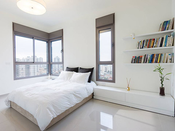 2、在狹小臥室中,我們也可以通過把床靠墻或是放置在角落,這樣擺放可以增加有用的使用空間,來讓空間顯得更大一些。