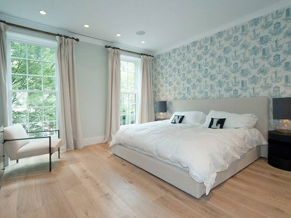 8、臥房只是小,但並不太表它就必須單調。在墻面上,例如床頭,可以加上一面顏色鮮明的壁紙圖騰,讓墻面瞬間成為空間焦點。