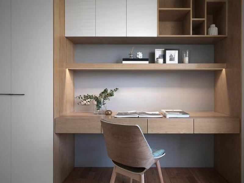 在臥室直接使用榻榻米書桌一體化設計,統一性更強,書桌的位置也會更寬敞合理,現在很多家庭都采用榻榻米設計。