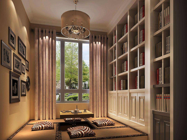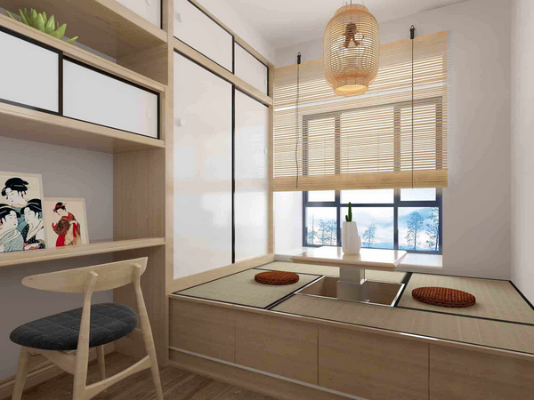 在進行榻榻米裝潢時,地臺設計需要特別注意,它的高度往往是根據房屋樓層高度以及收納要求來決定的。如果空間的樓層比較高,超過2.8米,則可以將地臺高度設計在40cm,甚至更高些,增加空間的收納功能。如果樓層不高的話,地臺的高度也應減小,不然容易造成居住者活動不便,還會產生壓抑感。