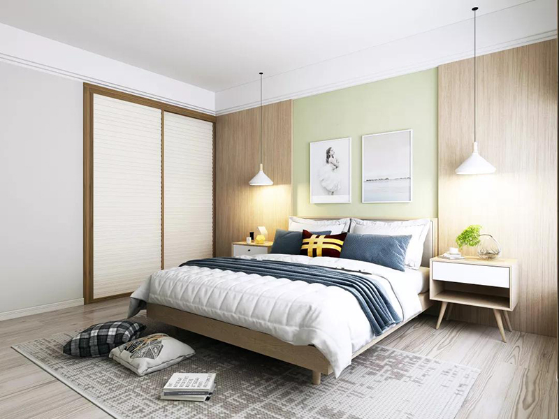 臥室的燈光主要滿足兩種功能就可以,一種是睡前照明,一種是夜間照明。