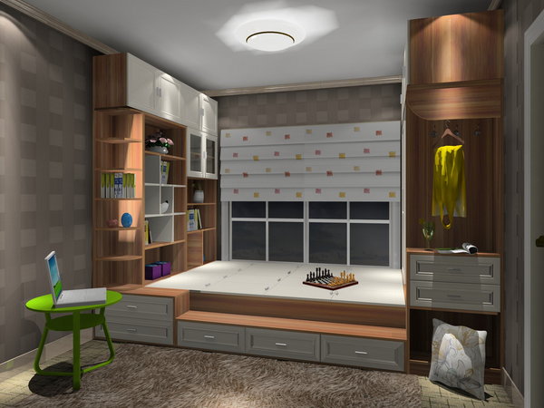榻榻米帶書櫃的設計可以很好的利用空間,節約空間,而且可以把榻榻米床設置得高一些,這樣底部就可以作為收納櫃使用,把平時不怎麼使用到的東西擺放在里面,可以讓收納空間變得更好,而且也可以讓室內變得更加整齊。