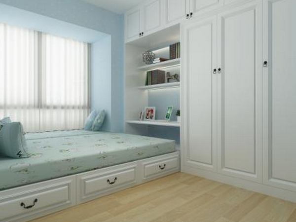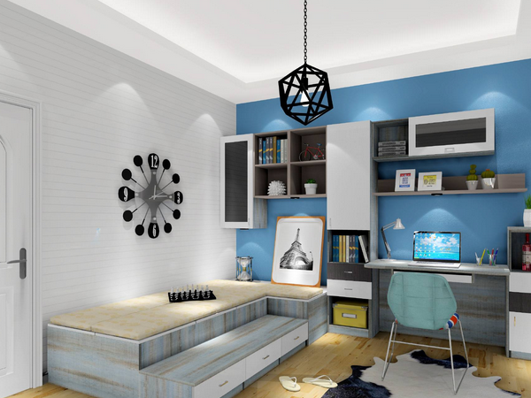 3、通過組合平面圖和自然採光判斷桌子的方向后,您可以決定將組合櫃放置在床上還是床上。L形設計可以最好地完成衣服,書籍和奇特物品的存放,還可以改善空間的整體利用率,並營造簡單干凈的空間感。