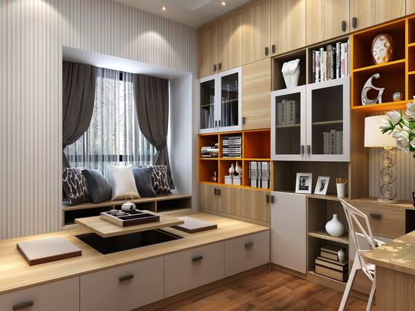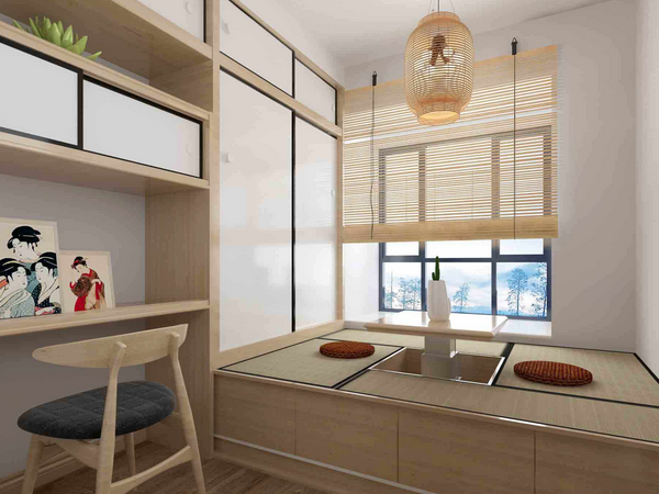 在進行榻榻米裝潢時,地臺設計需要特別注意,它的高度往往是根據房屋樓層高度以及收納要求來決定的。如果空間的樓層比較高,超過2.8米,則可以將地臺高度設計在40cm,甚至更高些,增加空間的收納功能。如果樓層不高的話,地臺的高度也應減小,不然容易造成居住者活動不便,還會產生壓抑感。