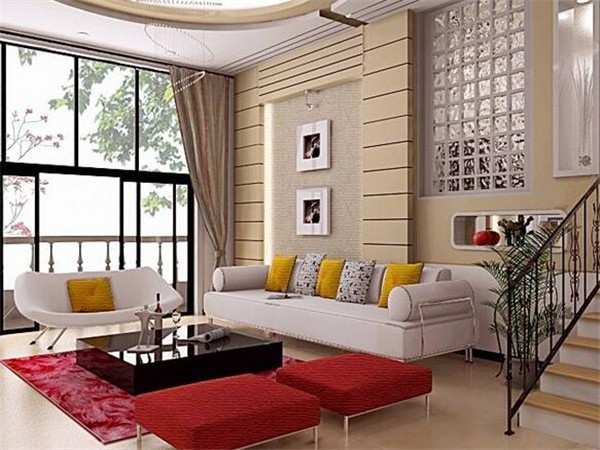 (1)整體格局:在裝潢客廳時,天花板吊頂材料的顏色要比地板和墻壁顏色淺,否則會給人一種壓迫感,不適合長久居住。在裝潢設計的時候,還要避免梁結構,如果有梁,我們可將其改為其他的結構,如拱門、天花板延伸、繪圖等,也可直接將其劃分成兩個結構。