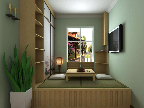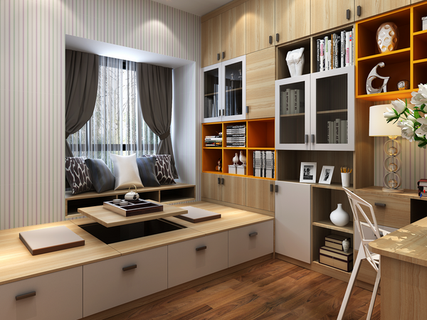 榻榻米不僅有著不俗的外觀特色,其內部也就是床下方也是有著強大的儲物功能。一般都是設計儲物櫃,用來收納一些不常用的東西;當然也可以將其設計成桌子床、椅子、沙發等家具,這樣可以避免家具的多余堆放。