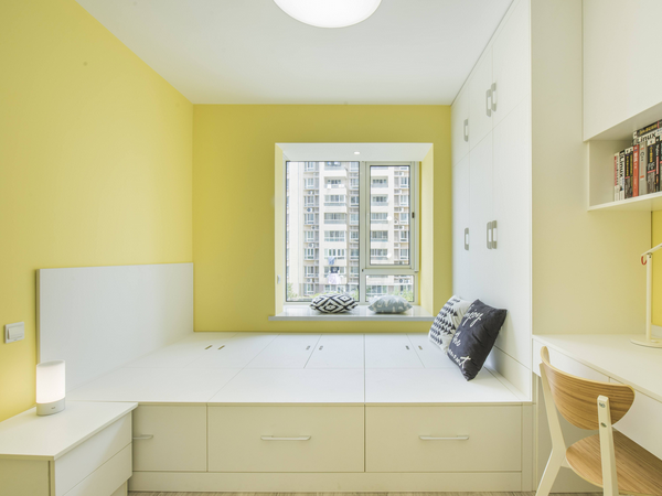 3、由于臥室內的墻壁有1/3的面積都會被櫃體所遮蓋,所以可以在留白的墻壁空間和家具上做些裝飾,盡量裝飾簡單一些,主要空間可以設計的個性化一些,選擇適宜的材料搭配整體色調,來烘托整體的氣氛。