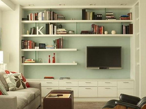 收納櫃可以用“無把手”的設計方式,優點是可以讓櫃子不像櫃子,而像是壁面造型,如此一來室內空間不會因為覺得堆滿了櫃子,而充滿壓迫感,另外,無把手的設計,若家中有小朋友的時候,還可以避免因為沖撞到突出的把手而受傷;特別要注意的是,這樣的設計方式,必須要確認開關門的方便性,不能因無把手的設計,而造成開關門的不方便。