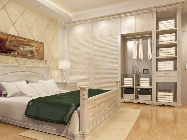 如果衣櫃移門采用實木材質打造,這種這衣櫃西讓人感覺非常典雅,價格也相對較高。它的門框也是采用實木制作而成,門芯為中密度板貼實木皮,在制作過程中通常會在實木外觀上做凹凸造型,然后進行噴漆處理,這樣不僅能保持木材的顏色而且非常精美,帶給人們強烈的視覺沖擊。