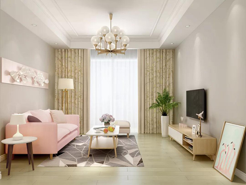 清新自然又自帶溫馨氣質的原木色,經典百搭,還能平衡粉色家具帶來的甜美感。客餐廳大面積原木色地板鋪開后,家的溫暖氣氛立馬就出來了。甜美可愛的粉色布藝沙發放在客廳也不顯突兀,反而讓客廳空間有了視覺焦點。