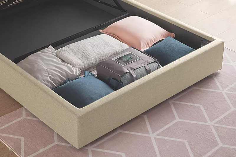 對女人來說,一個衣櫃是遠遠不夠的,這款帶收納功能的馬卡布藝床就是臥室的第二個衣櫃,只需要把排骨架拉起來,換季衣服、床品、鞋帽都可以放在床底下,大大的增強了臥室的收納功能。