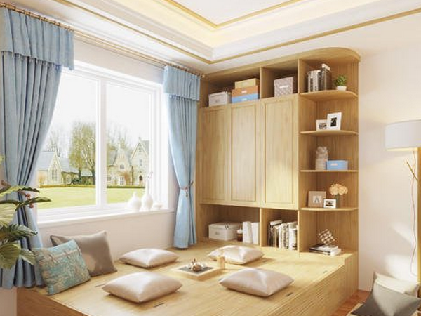 榻榻米床下方可以設計儲物櫃,可以將一些不常用的東西存放在榻榻米里,充分利用空間里的儲物功能。又或者把榻榻米床設計成桌子床和椅子沙發等家具,盡可能減少家具的多余堆放。