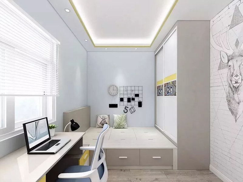 榻榻米與書櫃相結合,可以合理的規劃室內空間布局,不浪費一厘米空間;又可以在床頭做一排矮櫃當床頭櫃,里面可收納,還能做裝飾,合理的櫃體設計使空間利用率最大化。