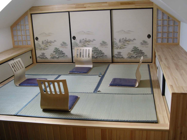 1、榻榻米床的制作是將一塊塊榻榻米用布條連接起來,再把它固定在地板上,人赤腳走在上面,平而不滑,既潔凈又舒適。