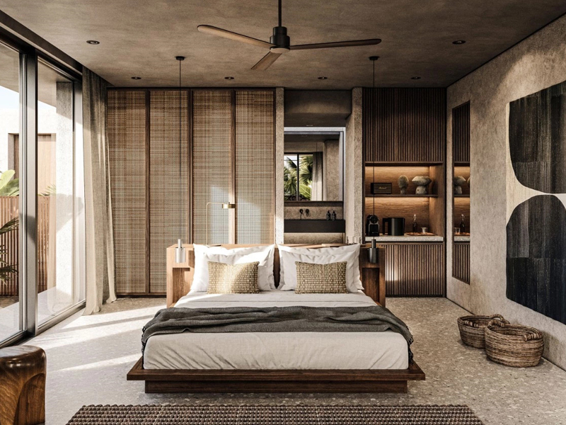 雖然它與白色有些相近,但它會比白色更柔和一些。如果我們將墻面布置成米白色的,那不僅可以避免墻面的單調感,還可以讓整個空間顯得更整潔明亮,有助于營造溫馨舒適的居住氛圍。並且米白色也是一種較為百搭的顏色,在各種風格的臥室中都很適用。