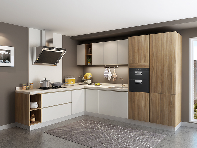 2、防水、防火,晶鋼櫥櫃門由鋁合金框架鑲嵌,表面能夠耐200℃高溫,解決了其他櫥櫃材料受潮和被灼傷的問題;