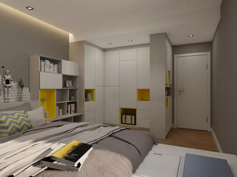到頂櫃體貼壁設置,完美融入墻壁中,在最大程度上保證了視覺的清爽干凈。
