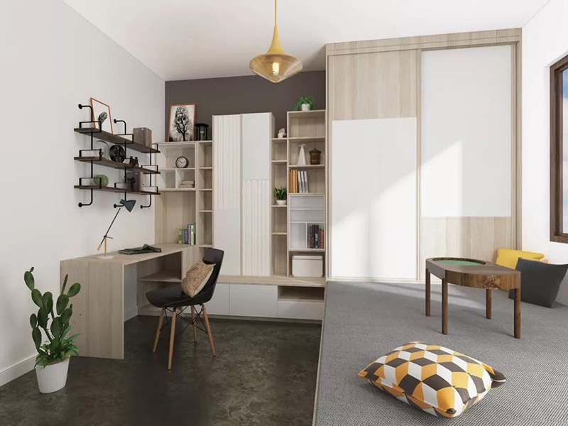 在飄窗處設置工作臺,這里既能學習工作,還能當梳妝臺用。