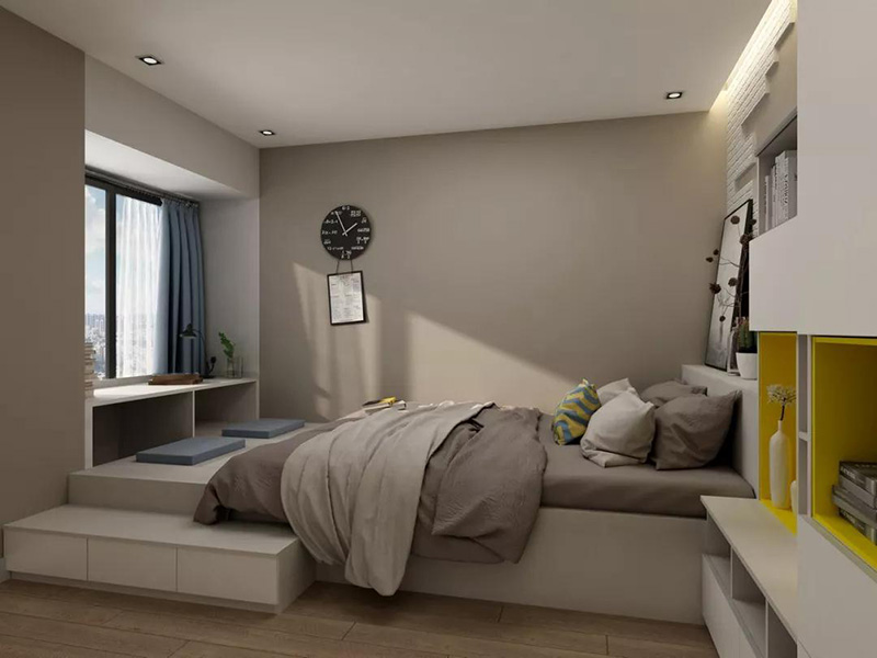 臥室用榻榻米取代一般的床,挖掘更多實用空間,提高收納力。