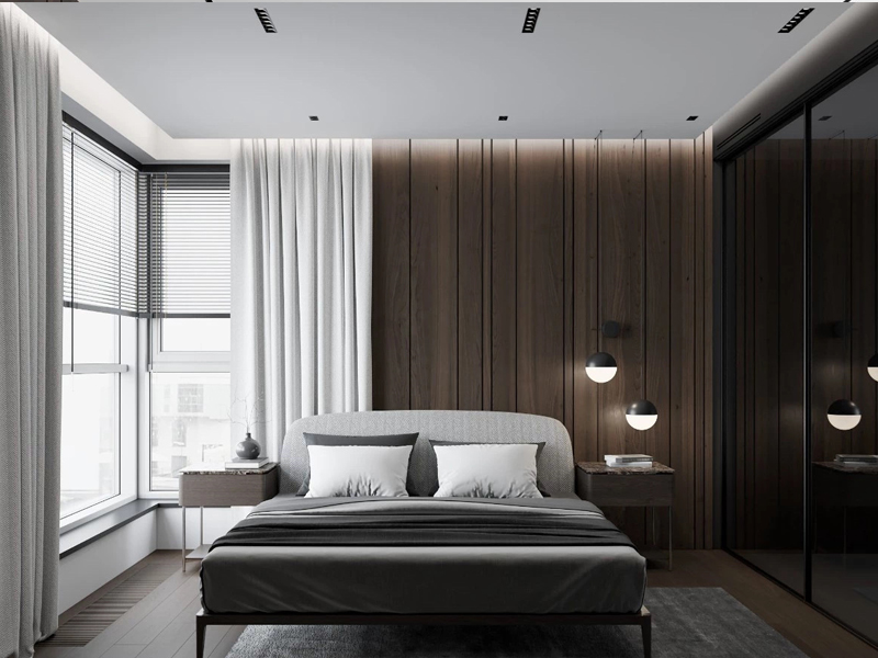 臥室落地窗可以給室內帶來充足的採光,特別對于別墅裝潢,更能體現出落地窗的價值,可以使別墅360度採光通風無死角。