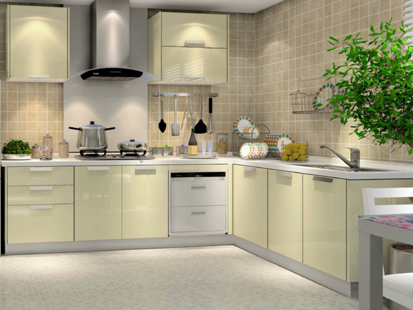 3、 烤漆櫥櫃門板:烤漆櫥櫃門板多采用UV漆,表面明亮光滑,色澤通透艷麗,具有很強的視覺效果,顏色也是非常多種多樣,很符合現代化廚房的裝飾,在性能上,也是極具耐磨性,不褪色,不變形,使用壽命超長,也是現代廚房裝飾中比較理想的櫥櫃門板。