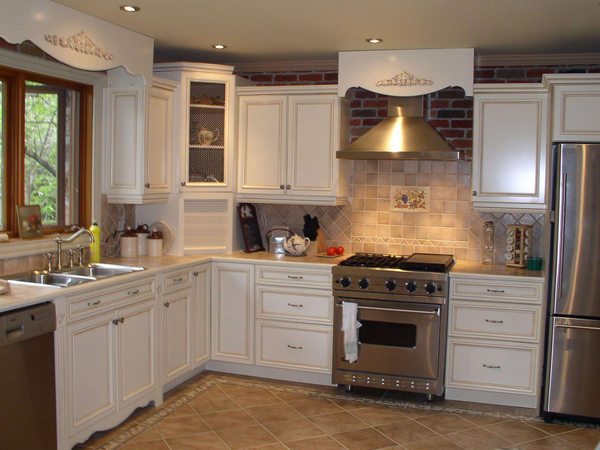 這款櫥櫃效果圖是白色的整體櫥櫃,布局非常得緊湊,即便是小空間依然呈現出一個功能完整,大氣簡約的時尚小廚房。白色的外觀有利于拉伸視覺效果,明亮空間感,紅色花紋凳和空間多彩小物件點綴提亮了整個白色空間,也不會讓白色櫥櫃看起來過于蒼白單調。
