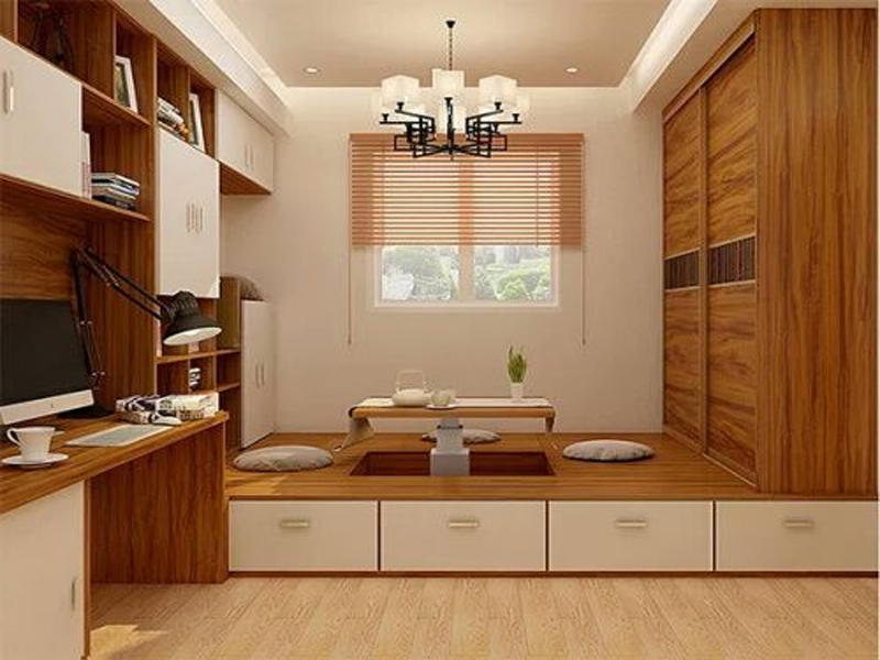 2、充分利用空間:我們可以在榻榻米底部的位置設計一些儲物櫃,把平時不怎麼用到的東西儲存在榻榻米的櫃子里,充分使用空間里的收納功能。還可以將它設計成桌子床以及椅子沙發等家具,盡量減少家具的多余堆放
