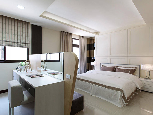 2、因為臥室隔斷一般不承重,所以造型的自由度很大,可以按照自己臥室的大小而定,但是應該注意高矮、長短和虛實等的變化統一。