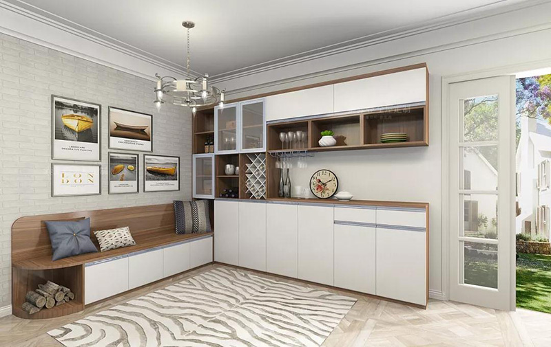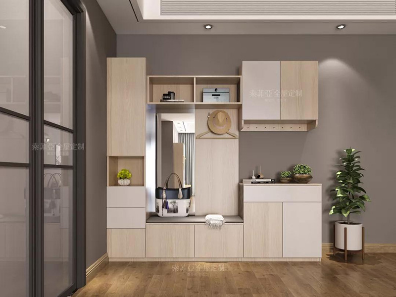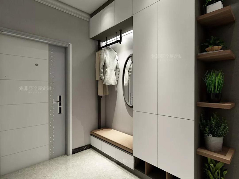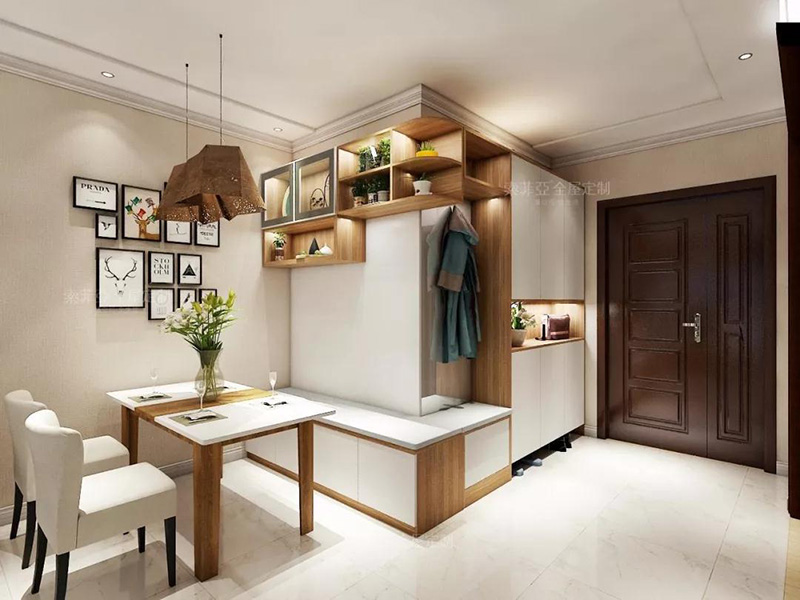入戶櫃可以添加卡座設計充當換鞋凳,方便換鞋和隨手放包包、雜貨。對于收納來說,要想用來放常穿鞋,建議打造成隔板,拿放方便。