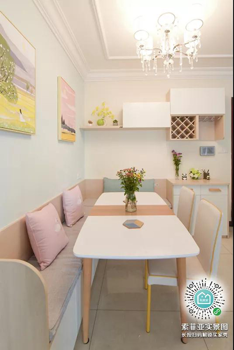 小戶型卡座設計不僅能增加很多座位,還能增加收納空間,當然不追求收納的人也可以選擇沙發凳和長椅,都是空間利用的絕佳辦法。