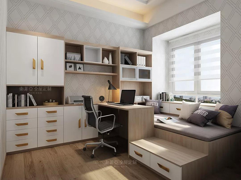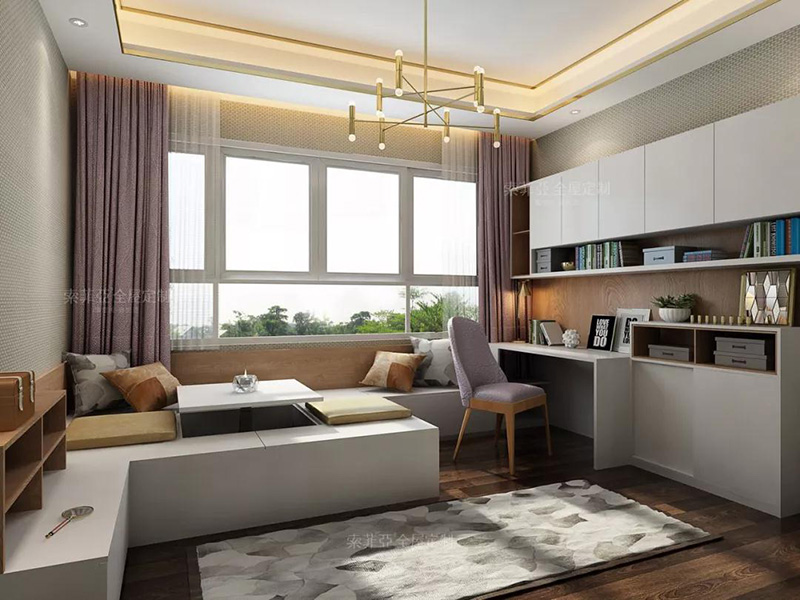 如果說次臥的空間小,那么留給書房的空間就更不多了,面對居高不下的房價,越來越多人選擇將書房打造成一個多功能房,平時當書房用,有親朋留宿時就變成客房,或者打造成長輩房,又或者改造成二孩房。