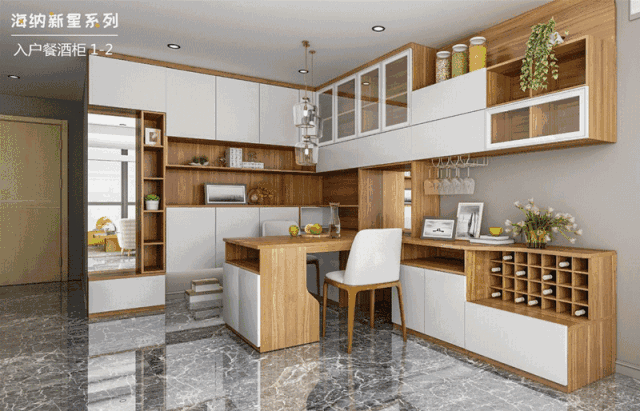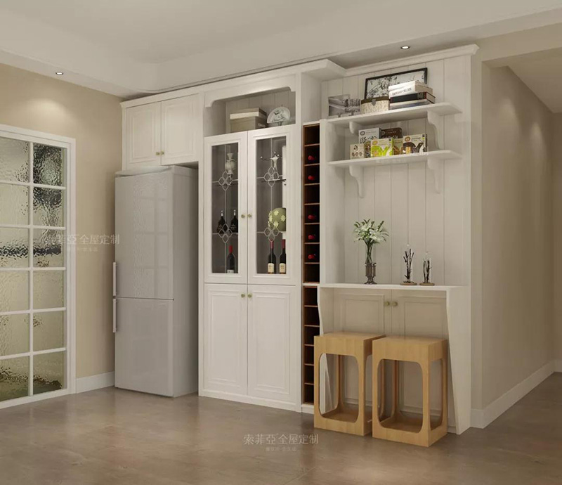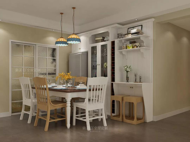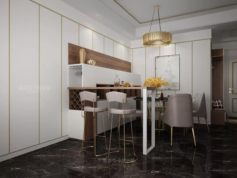餐邊櫃旁邊可以設計一個二人吧臺,增添格調。