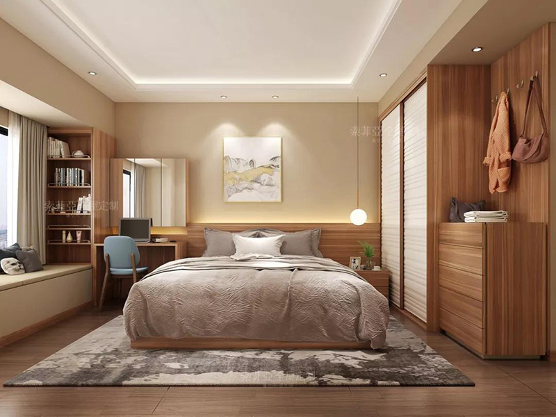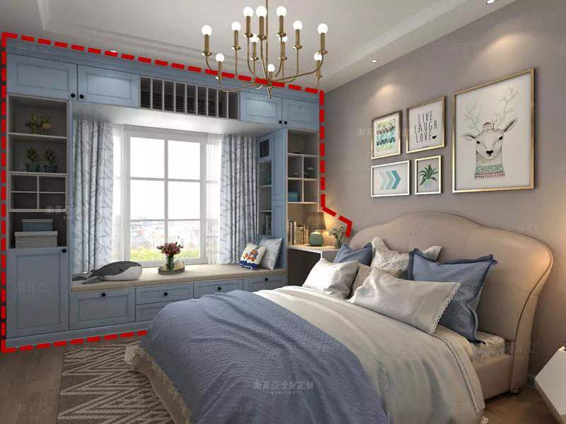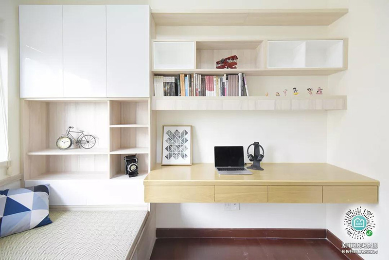 飄窗四周都搭建起了櫃子,有坐臥區也有儲物區,還有學習區。