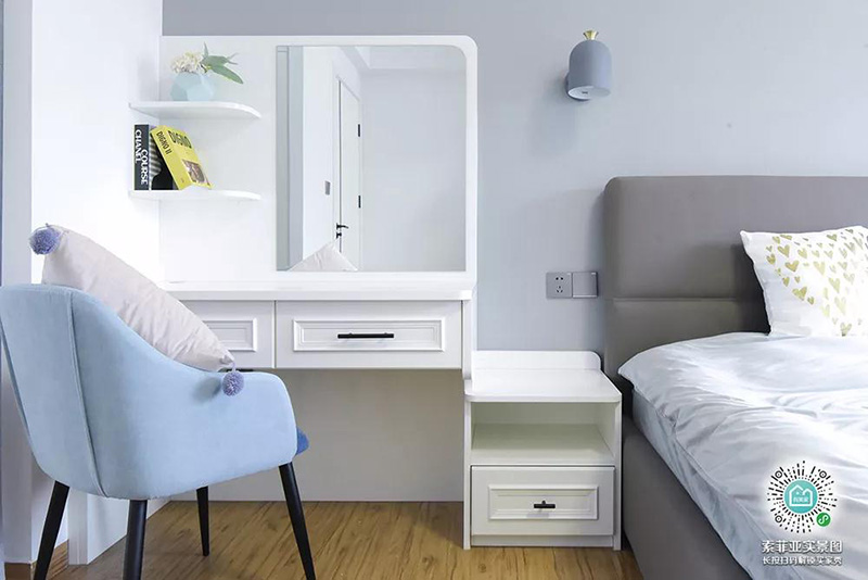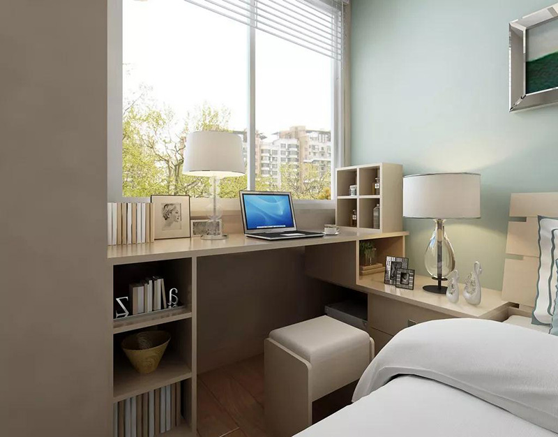 可以將小床頭抽屜櫃扔掉,打造書桌櫃,變成學習區。