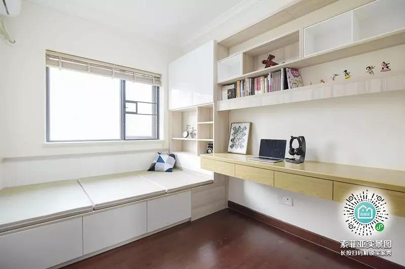 還覺得飄窗雞肋?那是你不會用。經典榻榻米+飄窗組合,就能很好地把飄窗下面的空間利用起來,不但不會再亂堆衣服,通風採光還好,視野也非常棒,既美觀又實用。