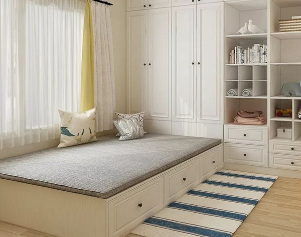 3、質量臥室裝潢,榻榻米的質量不可忽視,只有高質量的榻榻米,才能夠帶來更高質量的享受,讓你的居家時光更加愜意,不論是工作還是學習,都能元氣滿滿。質量好的榻榻米,經久耐用,所以在選購的時候一定要學會辨別其質量的好壞,在這方面,選擇現場客製化效果會顯著很多。