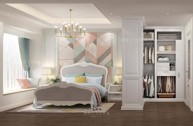 在臥室背景墻上做些獨特的形狀,可以讓空間的視覺層次更豐富,同時要注意多而不亂原則。