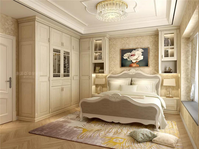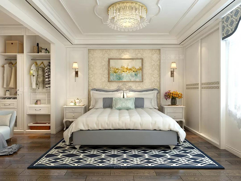 還可以圍繞著床頭客製化一個墻面收納櫃,隨手取物放物都很方便,增加功能性的同時還不影響背景墻的美觀。