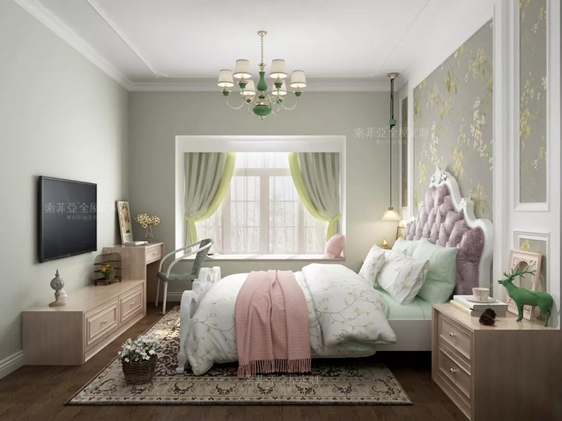 臥室的觀感與我們的睡眠質量息息相關,所以刷漆的顏色選擇上,阿弟建議是選冷色調、低明度的顏色,不僅不會傷眼,還能營造溫馨感,有助于入睡。